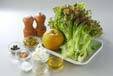 サニーレタスは食べやすい大きさにちぎって冷水に放ち、パリッとしたらザルに上げ、しっかり水気を切る。