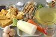 厚揚げ、ゴボ天、巾着は熱湯をかけて油抜きをする。