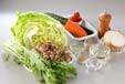 ニンジンは皮をむき、縦せん切りにしてレタスと合わせる。