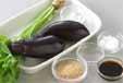ナスはヘタを切り落として縦半分に切り、5mm幅の半月切りにし、水に放つ。