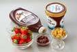 器にバニラアイス、イチゴ、コーンフレークを盛り合わせ、好みでイチゴジャムやチョコシロップをかけ、あればミントの葉を飾る。