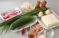 豆腐を加えてサッと炒め合わせ、赤唐辛子、水切りしたモヤシ、ニラを加えて更に炒め合わせる。