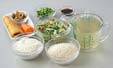 炊飯器に洗い米、調味料を入れ普通に炊く時の水加減までだし汁を加え、山菜、油揚げ、ニンジン、クルミを加え、スイッチを入れる。