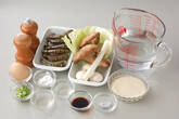 キャベツは熱湯でサッとゆでみじん切りにし、白ネギは細かいみじん切りにする。マッシュルームは汚れを拭き取りみじん切りにする。