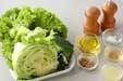 食べる直前に、ドレッシングのボウルにレタス、マスタードグリーン、キュウリを入れ全体にからめ、器に盛り分け、大葉を散らす。