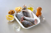 魚が一尾まるごとの場合は尾から頭に向かって両面ウロコを取り、アジの場合は尾の付け根にある固いウロコ状のゼイゴを尾側から頭に向かって削ぎ取る。盛り付けた時裏になる側(頭を右、腹を手前)の腹に4cm位の切り込みを入れてワタを出し、きれいに洗う。火が通りやすいように、背びれの向こう面に切り込みを入れる。表側の身の厚い部分に飾り包丁を入れる。両面に塩をして、10分以上置いておくと塩分が少し魚の身に入り美味しくなります。