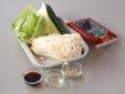 器に、レタス、キュウリ、セロリを盛り合わせる。のりを盛って更に<なめたけ>をのせる。
