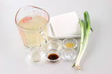 鍋にだし汁を入れて強火にかけ、煮立てば<調味料>、ハンペン、青ネギを入れる。