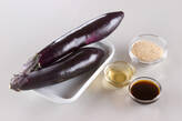たっぷりの煮立った強火の熱湯にナスを入れ、再び煮立てば1分位ゆでてザルに上げ、お玉等で押さえて水気を絞る。