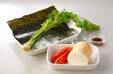 長芋、明太子、焼きのりを混ぜ合わせて器に盛り、ミツバをのせる。