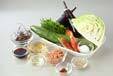 袋にナス、キュウリ、キャベツ、ニンジン、ミョウガ、大葉、塩を入れる。袋に空気を入れ、口を持って袋を振って塩を全体にからめる。