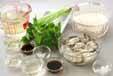 炊飯器に洗い米、<合わせ調味料>、カキの煮汁を入れ、米2.5合の目盛りまでだし汁を加える。カキ、水に放っていないショウガを加え、普通に炊く。
