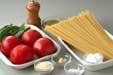 トマトはヘタをくり抜き、熱湯に入れて皮が破れれば、すぐ水に取り皮をむく(湯むき)。横半分に切って種を取り除き、粗く刻む。
