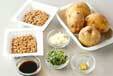 ボウルに、納豆、粉チーズ、しょうゆ、練りカラシを混ぜ合わせ、(1)の揚げジャガイモ、刻みネギを加え、サックリ合わせ器に盛る。