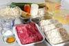 牛肉は食べやすい大きさに切る。大根、ニンジンは皮をむき、油揚げの大きさに合わせて短冊に切る。青ネギは3cm幅の斜め切りにする。エノキは水洗いして根元を切り落とし、食べやすい大きさにさばく。モヤシはたっぷりの水に放ち、パリッとすればザルに上げ、しっかり水気をきる。