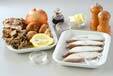 アルミホイルを2枚重ね、サラダ油少々を敷き、玉ネギ、生シイタケ、マイタケを置きカラスガレイをのせ、塩コショウを振り、バターをのせて包む。