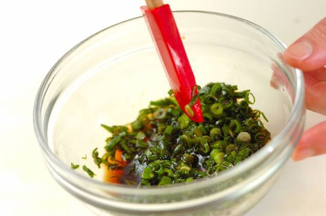ボウルで<ニラダレ>の材料を混ぜ合わせ、10分置く。
