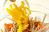 たっぷりの熱湯にゴボウ、ニンジン、レンコンを入れ、煮たったら1~2分ゆでてザルに上げ、水気をしっかりきり、<ワサビマヨ>のボウルにたくあんと共に入れて和え、器に盛る。