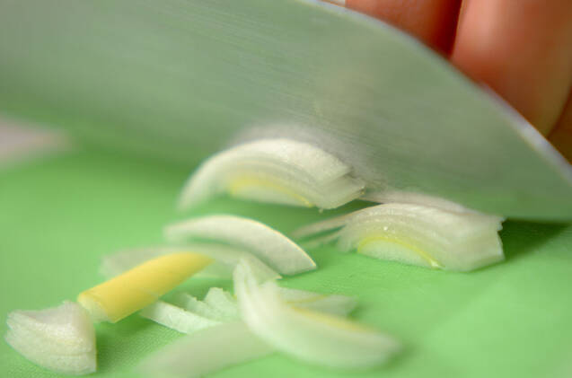 大根とショウガは皮をむき、すりおろす。白ネギは縦半分に切り、さらに斜めに切る。