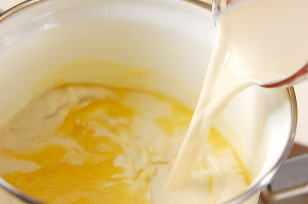 フツフツ泡が出てきたら、残りの豆乳250mlを一気に加えて泡立て器でダマが出来ないように手早く混ぜ合わせ、更に溶きのばした白みそ、他の<みそソース>の調味料を加え混ぜ合わせる。オーブンを250℃、12~15分に予熱する。※火加減に注意して、焦がさないように白く仕上げます。また豆乳を半量にして、だし汁を加えてもOKです。みそソースを加熱しすぎ、固くなってしまった場合は、豆乳でのばして下さい。