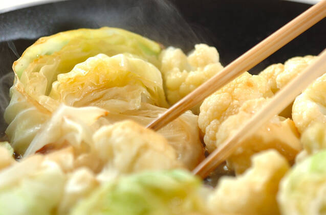 バター、しょうゆを加え、バターが溶けたら全体にからめるようにして焼く。器に盛り、お好みで塩コショウを振る。