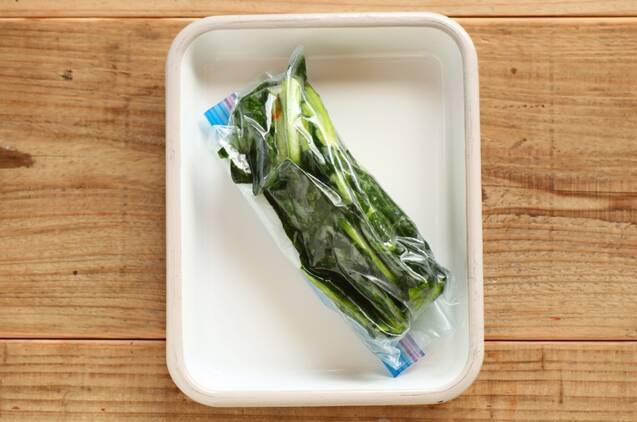 しんなりしたら、空気を抜いて口をとじ、冷蔵庫で保存する。