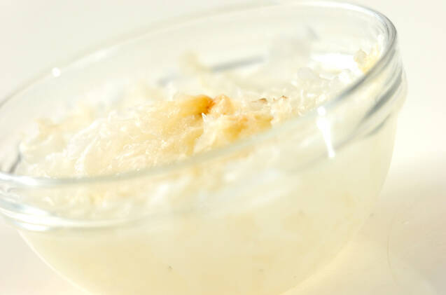 白キクラゲは水、またはぬるま湯で柔らかくもどし、固い石づきを切り落とし、食べやすい大きさに切る。