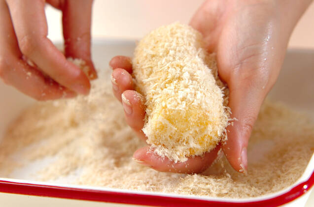 揚げ油を180℃に予熱し始める。冷えたコロッケタネを8~12等分に分け、手に分量外のサラダ油を薄くぬって手早く形を整える。<衣>の小麦粉、溶き卵、パン粉と順につける。