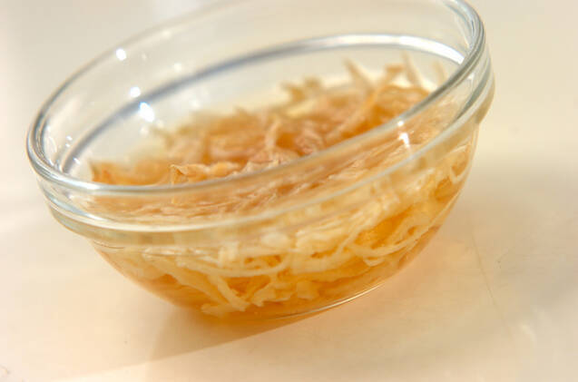 切干し大根は10分程水につけもどした後、熱湯で1分程ゆでて水気をきる。