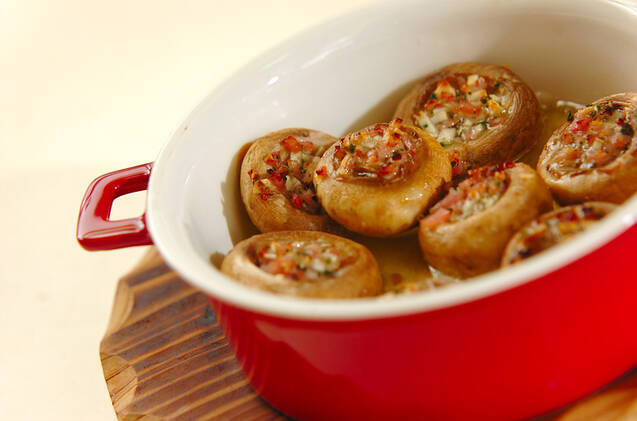 フォカッチャのキノコたっぷりピーナッツバター炒めのせ