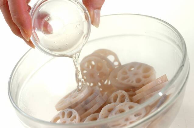 寿司飯にしば漬け、<炒り卵>、白ゴマを加えて混ぜ合わせる。底が取れるケーキ型の場合は、均等になるように押しながら詰めていく。