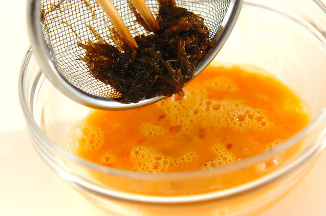 ボウルで<卵液>の材料を混ぜ合わせる。