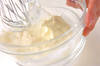 生クリームをボウルに入れ、ボウルの底を氷水で冷やしながらふんわりするまで泡立て器で泡立て、ホイップクリームを作り冷蔵庫に入れておく。