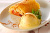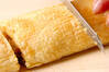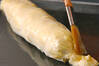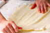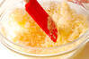 バターは耐熱容器に入れ電子レンジで溶かし、他の<合わせパン粉>の材料と混ぜ合わせる。電子レンジは600Wを使用しています。