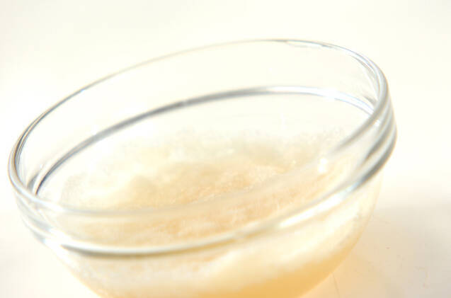 水に粉ゼラチンを振り入れ、ふやかしておく。