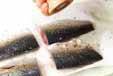 サバ、ジャガイモに塩コショウを振り掛ける。