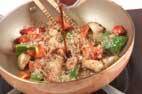 2 に<調味料>を加えて炒め合わせ、かつお節を加えてからめ、冷めてから詰める。