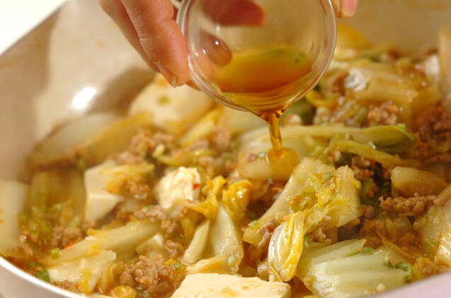 トロミがついたら、ゴマ油を加えてひと混ぜする。器に盛り、刻みネギを散らす。