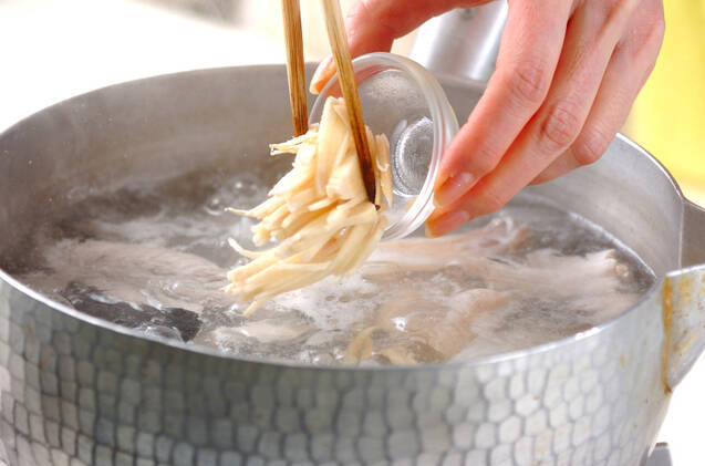 煮立ったらアクを取ってショウガを散らし、砂糖、みりんを加え、落とし蓋をして中火で15分煮る。