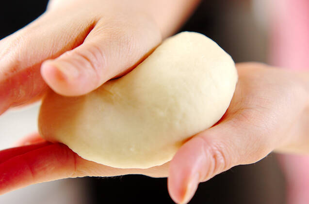 休ませた生地を手のひらにのせ、上から押さえてガスを抜く。生地の表面に張りが出るように丸め直す。