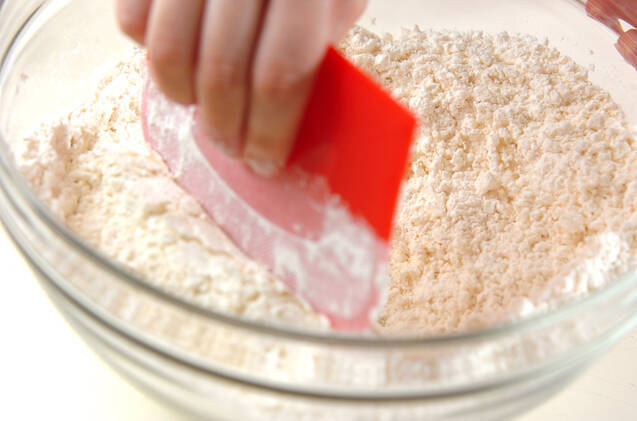ボウルにフランスパン粉、砂糖、塩を入れ、よく混ぜ合わせる。