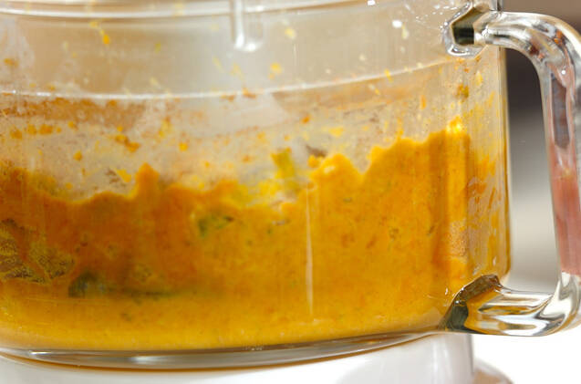 フードプロセッサーに<カボチャペースト>の材料を入れ、ペースト状になるまでかくはんする。
