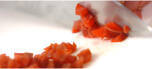 <梅昆布>の梅干しは種を取って包丁で粗くたたく。カリカリ梅は種を取って5mm角に刻む。キュウリのぬか漬けはきれいに水洗いして5mm角に刻む。<梅昆布>の材料を混ぜ合わせる。