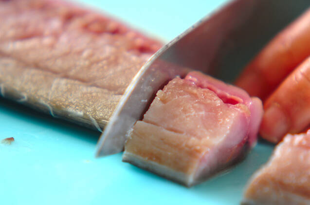 サバは幅1.5cmに切る。エビは殻と背ワタを取り、分量外の塩でもんで水洗いする。キッチンペーパーで水気を拭き取り、サバと共に<下味>の材料をからめて10分おく。