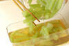 鍋に<フキの煮汁>を入れ煮立たせ、1のフキを加える。再び煮立てば1~2分煮て、いったんフキを煮汁から取り出し、フキとだし汁を別々に冷ます。冷めれば、フキを煮汁に戻し、味を含ませる。出来れば1日置いておくと、美味しくなりますよ。フキを煮汁で煮たままで冷ましておくと色が悪くなるので別々に冷まします。