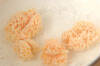 鯛の子は3~4cmの長さの筒切りにし、熱湯に入れ、切り口が花のように開けばザルに上げて水気をきる。ショウガは、皮をむき針ショウガにする。(細いせん切りにし水に放ちザルに上げる。)