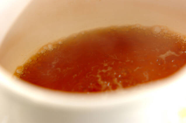 小鍋に<合わせダレ>の材料を合わせてひと煮たちさせ、ショウガ汁を加える。