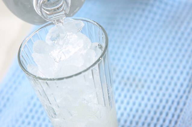 グラスに氷とユズの絞り汁を入れて炭酸飲料を注ぎ、ミントの葉を添える。
