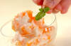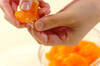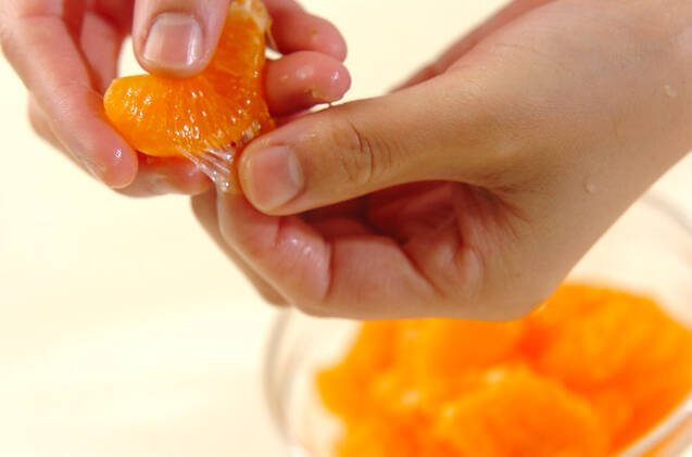 みかんは皮をむき、薄皮もむいて果肉を出す。