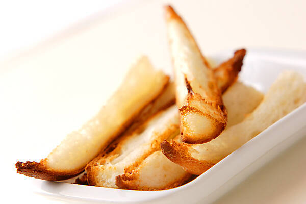 バゲットはスティック状に切り、トースターでカリッと焼く。